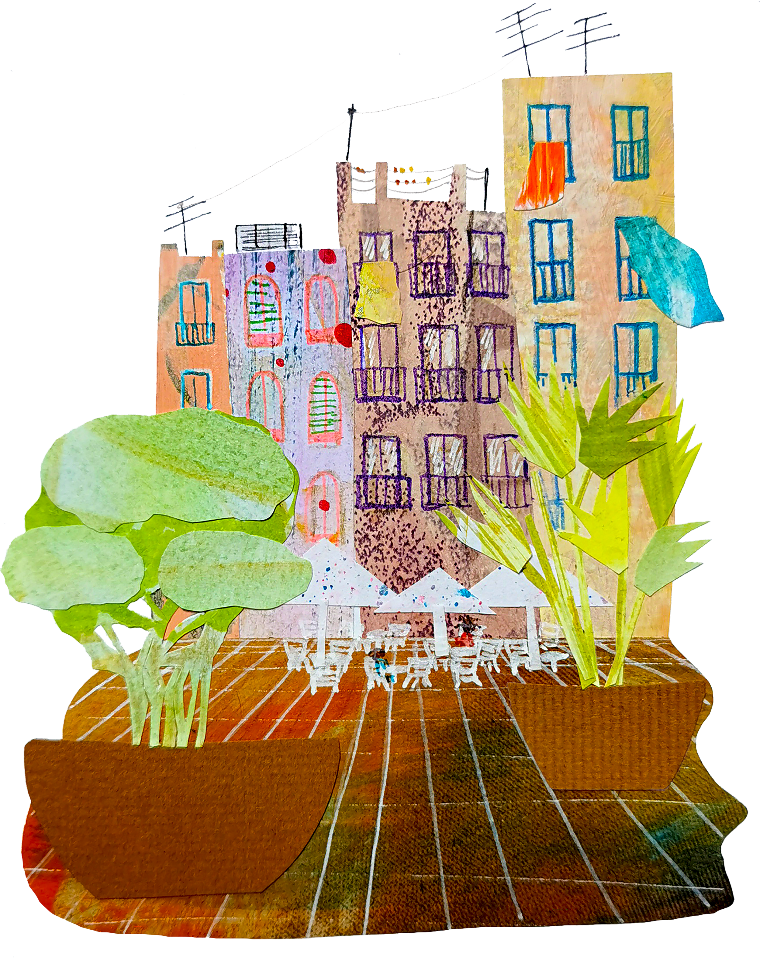 I’m an illustrator and artist living by Lake Balaton.I love creating with traditional techniques such as mixed media, collage, watercolor and acrylic. My work focuses on building colorful and detailed universes with eye-catching characters, vibrant colours and surroundings, aiming to transform reality into a magical world.
